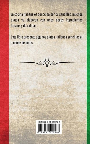 La cocina italiana es conocida por su sencillez: muchos platos se elaboran con unos pocos ingredientes frescos y de calidad. Este libro presenta algunos platos italianos sencillos al alcance de todos.