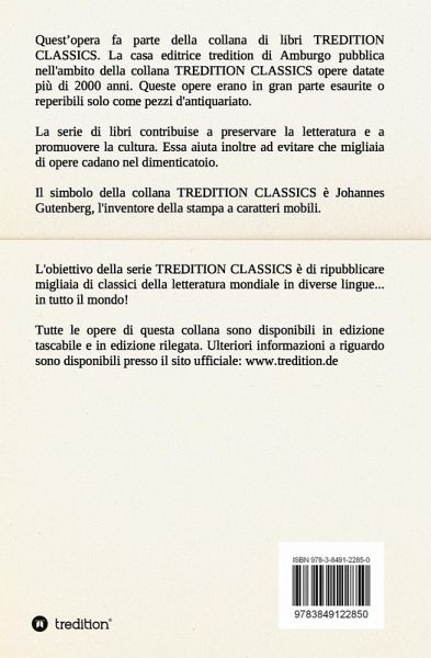 Quest opera fa parte della collana di libri TREDITION CLASSICS. La casa editrice tredition di Amburgo pubblica nell'ambito della collana TREDITION CLASSICS opere datate più di 2000 anni. Queste opere erano in gran parte esaurite o reperibili solo come pezzi d'antiquariato. La serie di libri contribuise a preservare la letteratura e a promuovere la cultura. Essa aiuta inoltre ad evitare che migliaia di opere cadano nel dimenticatoio. L'obiettivo della serie TREDITION CLASSICS è di ripubblicare migliaia di classici della letteratura mondiale in diverse lingue... in tutto il mondo!