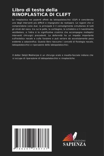 La rinoplastica nei pazienti affetti da labiopalatoschisi (CLP) è considerata uno degli interventi più difficili e impegnativi da realizzare. Le ragioni che si comprendono sono due: la principale è il coinvolgimento simultaneo di tutti gli strati del naso, tra cui la pelle, la cartilagine, lo scheletro e il rivestimento vestibolare, e l'altra è la significativa cicatrice che accompagna molteplici interventi chirurgici precedenti. La deformità ha un impatto importante sull'estetica nasale e sulla funzione e può variare da assolutamente poco evidente a catastrofica. Questo libro riassume i concetti di fisiologia nasale, labiopalatoschisi e riparazione della labiopalatoschisi.