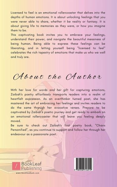 Licensed to feel is an emotional rollercoaster that delves into the depths of human emotions. It is about unlocking feelings that you were never able to share, whether it be reality or fantasy. It is about giving life to memories as they were, or how you imagine them to be. This captivating book invites you to embrace your feelings, understand their power, and navigate the beautiful messiness of being human. Being able to express these feelings can be liberating, and in letting yourself being licensed to feel celebrates the rich tapestry of emotions that make us who we well and truly are.