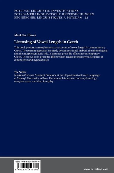 This book presents a morphosyntactic account of vowel length in contemporary Czech. The present approach is strictly decompositional on both the phonological and the morphosyntactic side. It assumes prosodic affixes in contemporary Czech. The focus is on prosodic affixes which realize morphosyntactic parts of diminutives and hypocoristics.