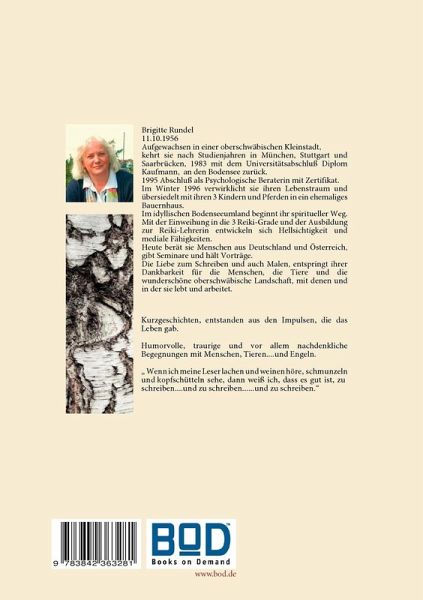 Kurzgeschichten, entstanden aus den Impulsen, die das Leben gab.Humorvolle, traurige und vor allem nachdenkliche Begegnungen mit Menschen, Tieren....und Engeln. " Wenn ich meine Leser lachen und weinen höre, schmunzeln und kopfschütteln sehe, dann weiß ich, dass es gut ist, zu schreiben....und zu schreiben......und zu schreiben."