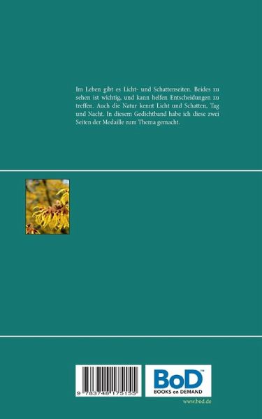 Im Leben gibt es Licht- und Schattenseiten. Beides zu sehen ist wichtig, und kann helfen Entscheidungen zu treffen. Auch die Natur kennt Licht und Schatten, Tag und Nacht. In diesem Gedichtband habe ich diese zwei Seiten der Medaille zum Thema gemacht.