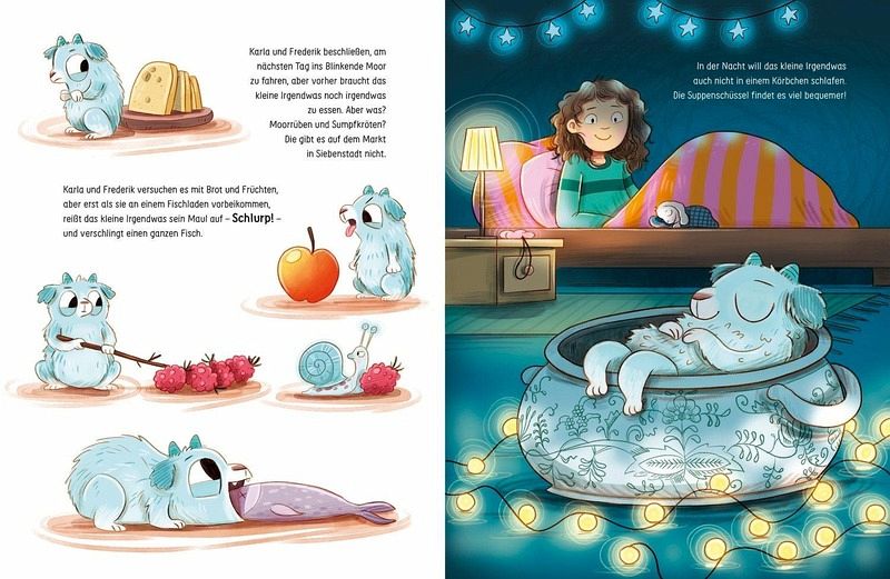 Eines Tages entdecken die beiden Freunde Karla und Frederik im Glimmerwald ein ungewöhnliches Ei, das niemandem zu gehören scheint. Zu ihrer Überraschung schlüpft aus dem Ei ein kleines, flauschiges Wesen, das sich als "Irgendwas" vorstellt. Gemeinsam machen sich die Freunde auf die Suche nach der Familie des Irgendwas und begegnen dabei fantastischen Gestalten wie der Nachtelfe Lumi und der weisen Moni Monk. Weder in Siebenstadt noch im blinkenden Moor finden sie Antworten. Trotz aller Rückschläge lernen Karla, Frederik und das Irgendwas, was es bedeutet, für jemanden da zu sein. Am Ende entdeckt das Irgendwas sein einzigartiges Leuchten und findet seine wahre Familie.