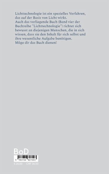 Lichttechnologie ist ein spezielles Verfahren, das auf der Basis von Licht wirkt. Auch das vorliegende Buch (Band vier der Buchreihe "Lichttechnologie") richtet sich bewusst an diejenigen Menschen, die in sich wissen, dass sie den Inhalt für sich selbst und ihre wesentliche Aufgabe benötigen. Möge dir das Buch dienen!