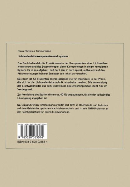 Die Entwicklung der Komponenten und Systeme der Lichtwellenleitertechnik hat heute bereits einen sol chen Stand erreicht, daB mit dem Einsatz und der Anwendung dieser neuen Technologie im groBen Stil begonnen werden kann. Die NachrichtenUbertragungstechnik wird daher in den kommenden Jah ren und Jahrzehnten eine umwalzende Entvlicklung erfahren. Das vorliegende Buch zu diesem Thema ist fUr Studenten und fUr in der Praxis stehende Ingenieure gedacht, die sich mit dieser neuen Technik vertraut machen wollen. Der Spezialist auf diesem Gebiet wird auf seine Fragen im Rahmen dieses Buches im allgemeinen keine Antwort finden. FUr weitergehende Untersuchungen kann auf das Literaturverzeichnis verwiesen werden, das einige Spezialliteratur zur Optischen Nachrichtentechnik ent halt. Der erste Hauptabschnitt Uber Lichtquellen, Lichtempfanger und Lichtwellen leiter veranschaulicht die Hirkungsweise der wichtigsten Komponenten einer LichtwellenleiterUbertragungsstrecke. Der zweite Abschnitt Uber Systeme schlieBt eher an die bekannten Fragestellungen der Nachrichtentechnik an. Das Hauptgewicht liegt dabei auf dem Entwurf rauscharmer Vorverstarker und der Untersuchung geeigneter Modulationsverfahren. wobei der erzielbare Storabstand im Vordergrund steht.