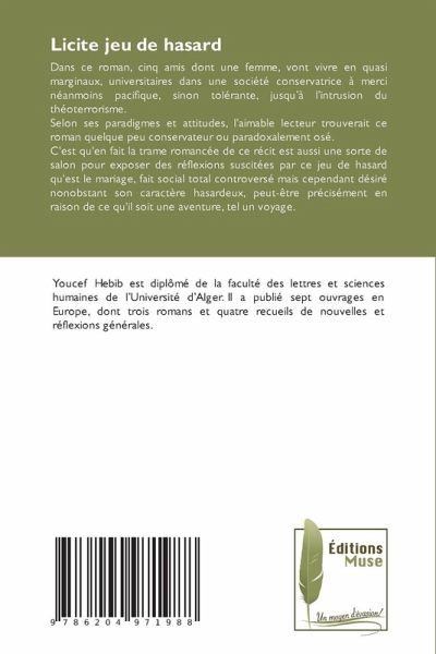 Dans ce roman, cinq amis dont une femme, vont vivre en quasi marginaux, universitaires dans une société conservatrice à merci néanmoins pacifique, sinon tolérante, jusqu'à l'intrusion du théoterrorisme.Selon ses paradigmes et attitudes, l'aimable lecteur trouverait ce roman quelque peu conservateur ou paradoxalement osé. C'est qu'en fait la trame romancée de ce récit est aussi une sorte de salon pour exposer des réflexions suscitées par ce jeu de hasard qu'est le mariage, fait social total controversé mais cependant désiré nonobstant son caractère hasardeux, peut-être précisément en raison de ce qu'il soit une aventure, tel un voyage.
