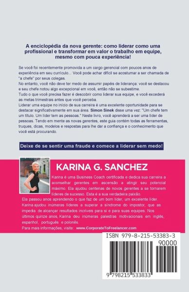 A enciclopédia da nova gestora – Como liderar como uma profissional e transformar em valor o trabalho em equipe, mesmo com pouca experiência. Parabéns! Agora você é uma gestora! Essas palavras soam como música para seus ouvidos, mas também podem dar calafrios na espinha nas novas gestoras da geração millennial. Como você vai fazer com que todos respeitem e confiem em suas decisões? Você conseguirá ser assertiva e traçar a fronteira entre ser amiga de sua equipe e liderá-la como se deve? Você pode também sentir que lhe falta experiência suficiente para gerenciar a organização e os colaboradores e ainda atender as expectativas. No entanto, você não deve ter medo de assumir papéis de liderança. Você não é despreparada. Sim, você é a escolha perfeita para a posição. Tudo o que você precisa fazer é descobrir como liderar sua equipe e você excederá as metas trimestrais antes que você perceba. Em Liderança para a Nova Gestora, você vai descobrir:Como superar a síndrome de impostor e se sentir à vontade liderando pessoas, mesmo se você não tiver tanta experiência como outras pessoas. Como avaliar seus pontos fortes, talentos e qualidades, e então usá-los para fortalecer sua influência no local de trabalho. Um entendimento profundo do lado humano da liderança que você não vai encontrar em nenhum outro lugar para ajudá-la a desenvolver suas habilidades de liderança. E muito mais… Liderar uma equipe no início de sua carreira é uma excelente oportunidade para se destacar significativamente em sua área. Simon Sinek disse uma vez: "Um chefe tem um título. Um líder tem as pessoas." Neste livro, você aprenderá a ser uma líder de pessoas Tendo em mente as novas gerentes, este guia contém todas as ferramentas, truques, dicas, modelos e respostas para lhe dar a confiança e o conhecimento que você está procurando.