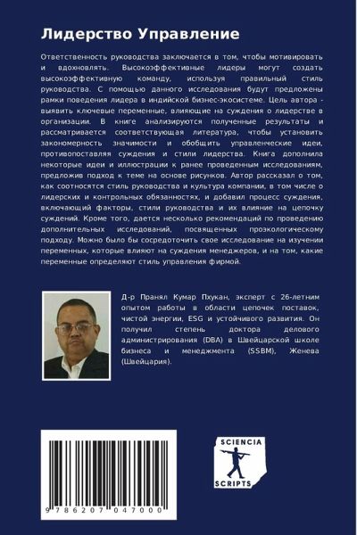 Otwetstwennost' rukowodstwa zaklüchaetsq w tom, chtoby motiwirowat' i wdohnowlqt'. Vysokoäffektiwnye lidery mogut sozdat' wysokoäffektiwnuü komandu, ispol'zuq prawil'nyj stil' rukowodstwa. S pomosch'ü dannogo issledowaniq budut predlozheny ramki powedeniq lidera w indijskoj biznes-äkosisteme. Cel' awtora - wyqwit' klüchewye peremennye, wliqüschie na suzhdeniq o liderstwe w organizacii. V knige analiziruütsq poluchennye rezul'taty i rassmatriwaetsq sootwetstwuüschaq literatura, chtoby ustanowit' zakonomernost' znachimosti i obobschit' uprawlencheskie idei, protiwopostawlqq suzhdeniq i stili liderstwa. Kniga dopolnila nekotorye idei i illüstracii k ranee prowedennym issledowaniqm, predlozhiw podhod k teme na osnowe risunkow. Awtor rasskazal o tom, kak sootnosqtsq stil' rukowodstwa i kul'tura kompanii, w tom chisle o liderskih i kontrol'nyh obqzannostqh, i dobawil process suzhdeniq, wklüchaüschij faktory, stili rukowodstwa i ih wliqnie na cepochku suzhdenij. Krome togo, daetsq neskol'ko rekomendacij po prowedeniü dopolnitel'nyh issledowanij, poswqschennyh proäkologicheskomu podhodu. Mozhno bylo by sosredotochit' swoe issledowanie na izuchenii peremennyh, kotorye wliqüt na suzhdeniq menedzherow, i na tom, kakie peremennye opredelqüt stil' uprawleniq firmoj.