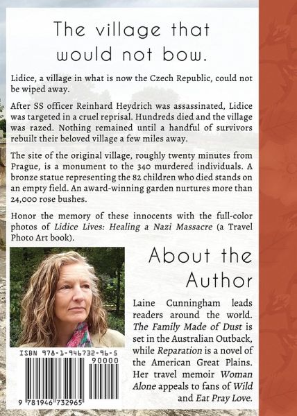 Lidice, a village in what is now the Czech Republic, could not be wiped away. After SS officer Reinhard Heydrich was assassinated, Lidice was targeted in a cruel reprisal. Hundreds died and the village was razed. Nothing remained until a handful of survivors rebuilt their beloved village a few miles away. The site of the original village, roughly twenty minutes from Prague, is a monument to the 340 murdered individuals. A bronze statue representing the 82 children who died stands on an empty field. An award-winning garden nurtures more than 24,000 rose bushes. Honor the memory of these innocents with text combined with photos that prove Lidice Lives: Healing a Nazi Massacre (a Travel Photo Art book). In the Travel Photo Art series, traditional tourism panoramas mix with arthouse aesthetics. These slim, passport sized productions are your passport to new perspectives on famous places. Peer around corners and discover a unique way to interact with monuments and memorials you thought you knew. This popular series includes titles that mix text with the pictures. Books like Notre Dame Cathedral: Our Lady of Paris, featuring photos taken months before the 2019 fire, become keepsakes associated with a specific site. Titles like Lidice Lives and Terezin and Theresienstadt are deeply meaningful for families touched by the Holocaust. Laine Cunningham, a three-time recipient of The Hackney Award, writes fiction that takes readers around the world. Her debut novel, The Family Made of Dust, is set in the Australian Outback, while Reparation is a novel of the American Great Plains. She is the editor of Sunspot Literary Journal.