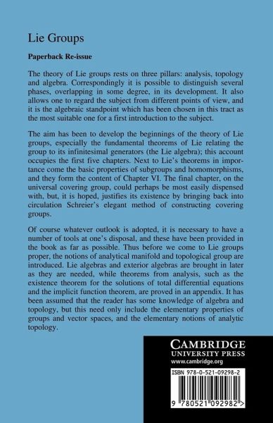 The theory of Lie groups rests on three pillars: analysis, topology and algebra.