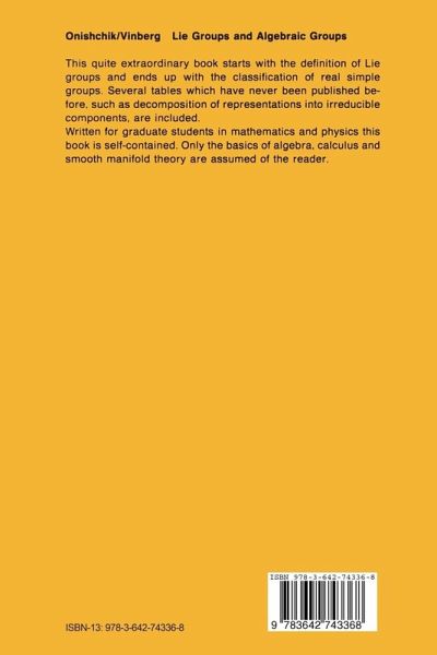 This book is based on the notes of the authors' seminar on algebraic and Lie groups held at the Department of Mechanics and Mathematics of Moscow University in 1967/68. Our guiding idea was to present in the most economic way the theory of semisimple Lie groups on the basis of the theory of algebraic groups. Our main sources were A. Borel's paper [34], C. ChevalIey's seminar [14], seminar "Sophus Lie" [15] and monographs by C. Chevalley [4], N. Jacobson [9] and J-P. Serre [16, 17]. In preparing this book we have completely rearranged these notes and added two new chapters: "Lie groups" and "Real semisimple Lie groups". Several traditional topics of Lie algebra theory, however, are left entirely disregarded, e.g. universal enveloping algebras, characters of linear representations and (co)homology of Lie algebras. A distinctive feature of this book is that almost all the material is presented as a sequence of problems, as it had been in the first draft of the seminar's notes. We believe that solving these problems may help the reader to feel the seminar's atmosphere and master the theory. Nevertheless, all the non-trivial ideas, and sometimes solutions, are contained in hints given at the end of each section. The proofs of certain theorems, which we consider more difficult, are given directly in the main text. The book also contains exercises, the majority of which are an essential complement to the main contents.