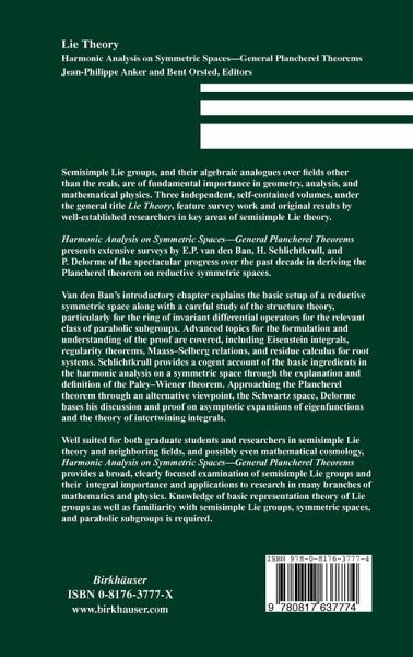 "This book is a remarkable and highly commendable effort by three leading experts, Erik P. van den Ban, Henrik Schlichtkrull, and Patrick Delorme, to survey the fascinating progress made in the last decade on the Plancherel theorem for reductive symmetric spaces." ---Mathematical Reviews "Well suited for both graduate students and researchers in semisimple Lie theory and neighbouring fields, and possibly even mathematical cosmology, Harmonic Analysis on Symmetric Spaces - General Plancherel Theorems provides a broad, clearly focused examination of semisimple Lie groups and their integral importance and applications to research in many braches of mathematics and physics." ---L'Enseignement Mathématique