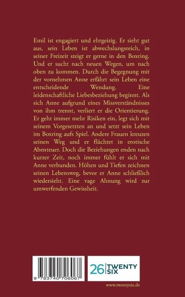 Emil ist engagiert und ehrgeizig. Er sieht gut aus, sein Leben ist abwechslungsreich, in seiner Freizeit steigt er gerne in den Boxring. Und er sucht nach neuen Wegen, um nach oben zu kommen. Durch die Begegnung mit der vornehmen Anne erfährt sein Leben eine entscheidende Wendung. Eine leidenschaftliche Liebesbeziehung beginnt. Als sich Anne aufgrund eines Missverständnisses von ihm trennt, verliert er die Orientierung. Er geht immer mehr Risiken ein, legt sich mit seinem Vorgesetzten an und setzt sein Leben im Boxring aufs Spiel. Andere Frauen kreuzen seinen Weg und er flüchtet in erotische Abenteuer. Doch die Beziehungen enden nach kurzer Zeit, noch immer fühlt er sich mit Anne verbunden. Höhen und Tiefen zeichnen seinen Lebensweg, bevor er Anne schließlich wiedersieht. Eine vage Ahnung wird zur umwerfenden Gewissheit.
