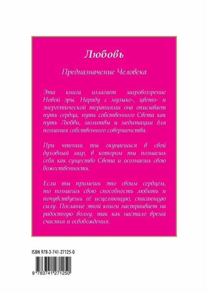 - Russische Ausgabe - Dieses Büchlein zeichnet ein neuzeitliches Weltbild. Beim Lesen tauchst Du ein in Deine spirituelle Welt, in der Du Dich als Licht-Wesen erfährst und Dir Deiner Göttlichkeit bewusst wirst. Wenn Du dies mit Deinem Herzen aufnimmst, spürst Du die heilende, alles selig machende Kraft Deiner Liebe. Gehe den Weg des Herzens und der Liebe, des Gebets und der Meditation als Deinen eigenen Lichtweg und erkenne Deine Vollkommenheit. Diese Botschaft des Buches stimmt heiter, denn die Zeit der Glückseligkeit ist da.