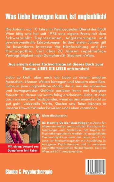 Liebe zu Gott, aber auch die Liebe zu einem anderen Menschen, können Welten bewegen und Mauern einreißen. Liebe ist jene unglaubliche Macht, die in uns die schönsten und bewegendsten Gefühle auslösen kann und Energien freisetzt, zu denen wir kaum fähig erscheinen. Liebe ist aber auch ein enormer Trostspender, wenn es uns einmal nicht so gut geht. Dieses Buch zeigt, wie liebevolle Worte, Gesten und Taten in unserer Umwelt Wunder bewirken und Leben verändern können.