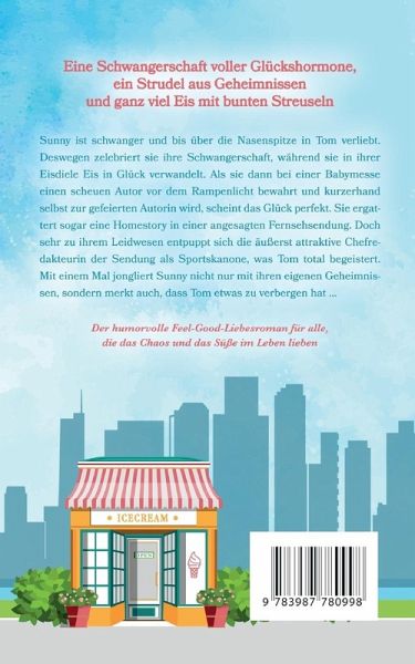 Eine Schwangerschaft voller Glückshormone, ein Strudel aus Geheimnissen und ganz viel Eis mit bunten Streuseln … Der humorvolle Feel-Good-Liebesroman für alle, die das Chaos und das Süße im Leben lieben Sunny ist schwanger und bis über die Nasenspitze in Tom verliebt. Deswegen zelebriert sie ihre Schwangerschaft, während sie in ihrer Eisdiele Eis in Glück verwandelt. Als sie dann bei einer Babymesse einen scheuen Autor vor dem Rampenlicht bewahrt und kurzerhand selbst zur gefeierten Autorin wird, scheint das Glück perfekt. Sie ergattert sogar eine Homestory in einer angesagten Fernsehsendung. Doch sehr zu ihrem Leidwesen entpuppt sich die äußerst attraktive Chefredakteurin der Sendung als Sportskanone, was Tom total begeistert. Mit einem Mal jongliert Sunny nicht nur mit ihren eigenen Geheimnissen, sondern merkt auch, dass Tom etwas zu verbergen hat … Weitere Titel dieser Reihe Liebe, Eis und Himbeerstreusel (ISBN: 9783986376819) Liebe, Eis und Weihnachtsstreusel (ISBN: 9783968178110) Erste Leser:innenstimmen „Ein wundervoller Liebesroman voller Charme, Liebe und ganz viel Eiscreme." „Humorvolle Liebesgeschichte – perfekt zum Abschalten und Wohlfühlen!" „Dieser Feel-Good-Liebesroman steckt voller Überraschungen und macht Lust auf mehr." „Romantisch, chaotisch, herzerwärmend!"