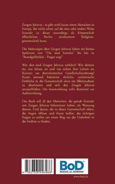 Zeugen Jehovas - es gibt wohl kaum einen Menschen in Europa, der nicht schon auf die eine oder andere Weise Kontakt zu dieser neuerdings als Körperschaft öffentlichen Rechts anerkannten Religionsgemeinschaften hatte. Die Meinungen über Zeugen Jehovas haben ein breites Spektrum von "Die sind harmlos" bis hin zu "Brandgefährlich - Finger weg!" Wer aber sind Zeugen Jehovas wirklich? Wie denken sie, was lehren sie und wie stehen ihre Lehren im Kontext zur demokratischen Gesellschaftsordnung? Kaum jemand bekommt ehrliche, authentische Einblicke in die Gemeinschaft ohne ein Bibelstudium zu absolvieren und sich den Zeugen Jehovas anzuschließen. Die Innenwirkung steht diametral zur Außenwirkung. Das Buch soll all den Menschen, die gerade Kontakt mit Zeugen Jehovas bekommen haben, als Warnung dienen. Und denen, die in dieser Gemeinschaft leben, die Augen öffnen und ihnen helfen, die richtigen Fragen zu stellen um einen Weg aus der Unfreiheit in die Freiheit zu finden.