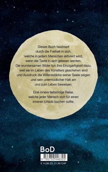 Dieses Buch fasziniert durch die Freiheit in sich, welche in jedem Menschen aktiviert wird, wenn die Texte in sich gelesen werden. Die wundersamen Bilder tun ihre Einzigartigkeit dazu, weil sie im Leben des Künstlers geschehen sind und Ausdruck die Willensstärke seiner Seele zeigen und sein unermüdlicher Halt am und zum Leben beweisen. Eine innere tiefsinnige Reise, welche jeder Mensch sich für einen inneren Urlaub buchen sollte.