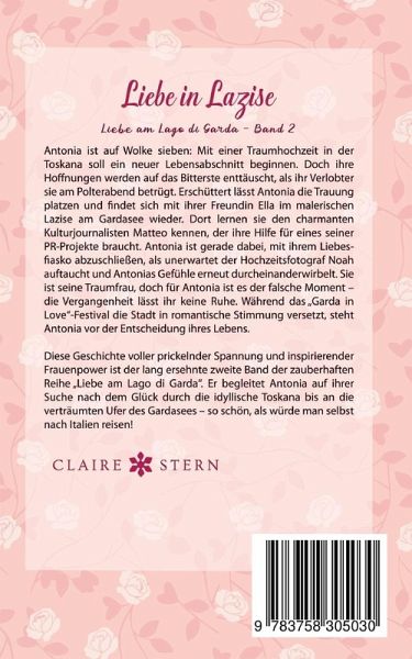 ,, Liebe in Lazise " von Claire Stern ist ein wunderschöner Wohlfühlroman, der zeigt, daß Niederschläge eine Chance für etwas Neues sind. Er ist der zweite Band von ,, Liebe am Lago di Garda ". Auch ohne Kenntnis des ersten Teiles,,Sehnsucht in Sirmione " ist man schnell in der Geschichte
