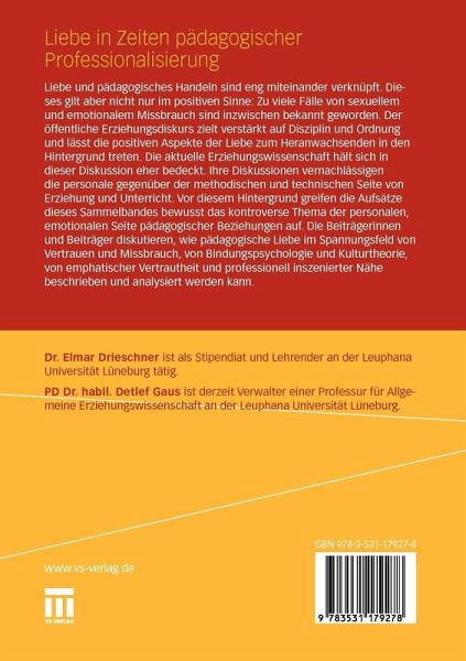 Liebe und pädagogisches Handeln sind eng miteinander verknüpft. Dieses gilt aber nicht nur im positiven Sinne: Zu viele Fälle von sexuellem und emotionalem Missbrauch sind inzwischen bekannt geworden. Der öffentliche Erziehungsdiskurs zielt verstärkt auf Disziplin und Ordnung und lässt die positiven Aspekte der Liebe zum Heranwachsenden in den Hintergrund treten. Die aktuelle Erziehungswissenschaft hält sich in dieser Diskussion eher bedeckt. Ihre Diskussionen vernachlässigen die personale gegenüber der methodischen und technischen Seite von Erziehung und Unterricht. Vor diesem Hintergrund greifen die Aufsätze dieses Sammelbandes bewusst das kontroverse Thema der personalen, emotionalen Seite pädagogischer Beziehungen auf. Die Beiträgerinnen und Beiträger diskutieren, wie pädagogische Liebe im Spannungsfeld von Vertrauen und Missbrauch, von Bindungspsychologie und Kulturtheorie, von emphatischer Vertrautheit und professionell inszenierter Nähe beschrieben und analysiert werden kann.