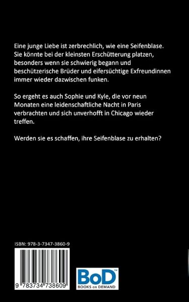 Eine junge Liebe ist zerbrechlich wie eine Seifenblase. Sie könnte bei der kleinsten Erschütterung platzen, besonders wenn sie schwierig begann und beschützerische Brüder und eifersüchtige Exfreundinnen immer wieder dazwischen funken.So ergeht es auch Sophie und Kyle, die vor neun Monaten eine leidenschaftliche Nacht in Paris verbrachten und sich unverhofft in Chicago wieder treffen. Werden sie es schaffen ihre Seifenblase zu erhalten?