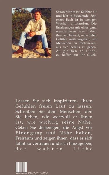 Gedichte und Geschichten aus dem Leben und der Freude an der Liebe, die in jedem von uns ruht und bei so vielen Menschen hinter dicken Mauern vergraben liegt. Lassen Sie sich inspirieren, Ihren Gefühlen freien Lauf zu lassen. Schreiben Sie dem Menschen, den Sie lieben, wie wertvoll er Ihnen ist, wie wichtig seine Nähe. Geben Sie denjenigen, die Angst vor Einengung und Nähe haben, Freiraum und zeigen ihnen, dass es sich lohnt zu vertrauen und sich hinzugeben, der wahren Liebe.