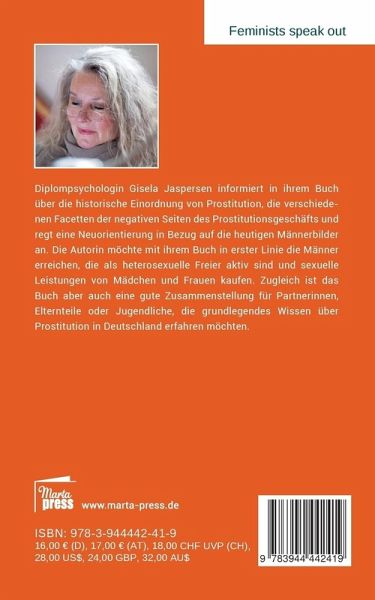Diplompsychologin Gisela Jaspersen informiert in ihrem Buch über die historische Einordnung von Prostitution, die verschiedenen Facetten der negativen Seiten des Prostitutionsgeschäfts und regt eine Neuorientierung in Bezug auf die heutigen Männerbilder an. Die Autorin möchte mit ihrem Buch in erster Linie die Männer erreichen, die als heterosexuelle Freier aktiv sind und sexuelle Leistungen von Mädchen und Frauen kaufen. Zugleich ist das Buch aber auch eine gute Zusammenstellung für Partnerinnen, Elternteile oder Jugendliche, die grundlegendes Wissen über Prostitution in Deutschland erfahren möchten.