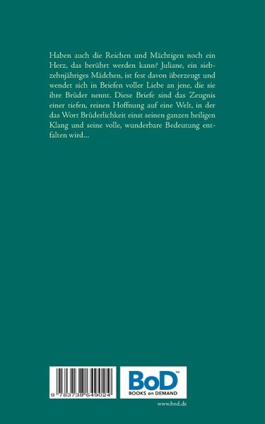 Haben auch die Reichen und Mächtigen noch ein Herz, das berührt werden kann? Juliane, ein siebzehnjähriges Mädchen, ist fest davon überzeugt und wendet sich in Briefen voller Liebe an jene, die sie ihre Brüder nennt. Diese Briefe sind das Zeugnis einer tiefen, reinen Hoffnung auf eine Welt, in der das Wort Brüderlichkeit einst seinen ganzen heiligen Klang und seine volle, wunderbare Bedeutung entfalten wird...