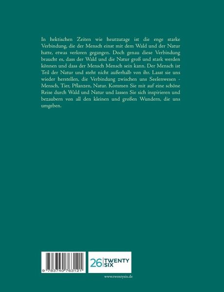 In hektischen Zeiten wie heutzutage ist die enge starke Verbindung, die der Mensch einst mit dem Wald und der Natur hatte, etwas verloren gegangen. Doch genau diese Verbindung braucht es, dass der Wald und die Natur groß und stark werden können und dass der Mensch Mensch sein kann. Der Mensch ist Teil der Natur und steht nicht außerhalb von ihr. Lasst sie uns wieder herstellen, die Verbindung zwischen uns Seelenwesen - Mensch, Tier, Pflanzen, Natur. Kommen Sie mit auf eine schöne Reise durch Wald und Natur und lassen Sie sich inspirieren und bezaubern von all den kleinen und großen Wundern, die uns umgeben.
