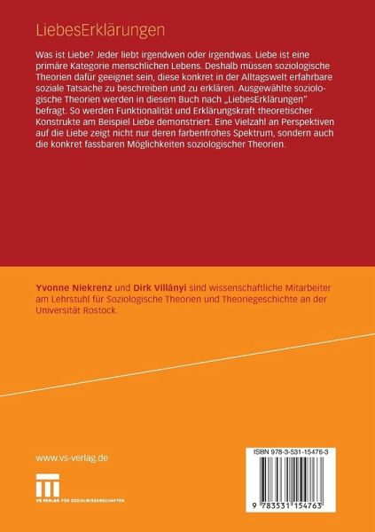 Was ist Liebe? Jeder liebt irgendwen oder irgendwas. Liebe ist eine primäre Kategorie menschlichen Lebens. Deshalb müssen soziologische Theorien dafür geeignet sein, diese konkret in der Alltagswelt erfahrbare soziale Tatsache zu beschreiben und zu erklären. Ausgewählte soziologische Theorien werden in diesem Buch nach "LiebesErklärungen" befragt. So werden Funktionalität und Erklärungskraft theoretischer Konstrukte am Beispiel Liebe demonstriert. Eine Vielzahl an Perspektiven auf die Liebe zeigt nicht nur deren farbenfrohes Spektrum, sondern auch die konkret fassbaren Möglichkeiten soziologischer Theorien.