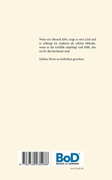 Wenn ein Mensch liebt, singt er sein Lied und es erklingt im Anderen als schöne Melodie, wenn er die Gefühle empfängt und fühlt, dass sie für ihn bestimmt sind.Schöne Worte zu Gedichten gewoben.