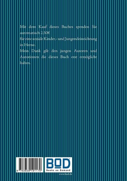 Dieses Buch entstand aus dem Wunsch heraus, kreatives Schreiben mit sozialem Engagement zu verbinden. Allen die an der Entstehung dieses Buches mitgewirkt haben gilt Respekt: Den Schulleitern und Lehrern der weiterführenden Schulen in Herne, die ihre Schüler auf die Aktion "Herner-Kinder-schreiben-für-Herner-Kinder" aufmerksam machten und vor allem den Autoren und Autorinnen die hier ihre Werke vorstellen und damit gleichzeitig anderen Kindern helfen.