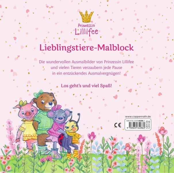 Ein Malblock mit 80 zauberhaften Ausmalbildern von Prinzessin Lillifee und vielen niedlichen Tieren.