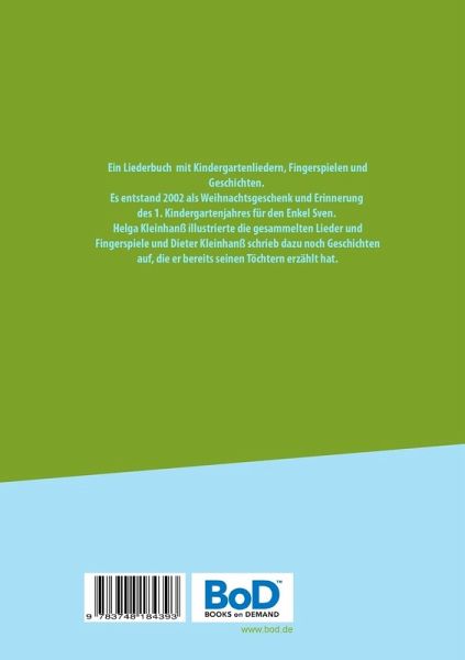 Ein Liederbuch mit Kindergartenliedern, Fingerspielen und Geschichten.Es entstand 2002 als Weihnachtsgeschenk und Erinnerung des 1. Kindergartenjahres für den Enkel Sven. Helga Kleinhanß illustrierte die gesammelten Lieder und Fingerspiele und Dieter Kleinhanß schrieb dazu noch Geschichten auf, die er bereits seinen Töchtern erzählt hat.