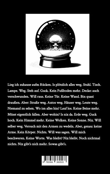 Ich liege auf dem Rücken. Dann passieren Dinge. Ab und zu klopft der Nachbar. Oder der Teufel steht in der Tür. Oder die Welt geht unter. Oder alles hört auf zu existieren. Und am Ende ist alles wieder gut.