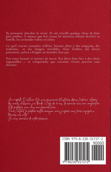 Dans un monde où la politique et le crime se confondent derrière des apparences trompeuses, Kai, adolescent issu d'une famille influente, aspire à une vie ordinaire. Mais sous le vernis de la perfection familiale se cachent des secrets bien plus sombres. En fouillant le passé de ses parents, il met au jour une vérité marquée par la vengeance et le sang. Ce voyage attire l'attention de forces puissantes, et pour le protéger, son père engage un garde du corps-un homme aussi énigmatique qu'ambigu, dont les véritables intentions restent troubles. Pris au piège d'un jeu de manipulations où chaque vérité dissimule un nouveau mensonge, Kai entraîne malgré lui ses amis dans une spirale infernale. À mesure que les révélations s'enchaînent, il plonge dans un conflit moral où la frontière entre bien et mal s'efface. Prisonnier de ce jeu dangereux, saura-t-il reprendre le contrôle de son destin, ou restera-t-il à jamais un simple pion dans une histoire qui, bien que la sienne, le dépasse ?