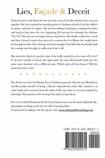 Navia has been with Bama for the last nine years of her life and they have one son together. She has reached her breaking point of dealing with all of his lies, infidelity, abuse, and lack of respect. She has been Bama's backbone, committed to him, and loyal to him since the very beginning. He has put her through the ultimate "No, No" that she can no longer bounce back from. She finally realizes her worth and that it doesn't matter how great of a woman she is to Bama, she would never be Enough for him. She is fed up, and had enough of his Shi$! She has finally built the courage and strength to walk away from it all. Then, she meets her ideal of a perfect man. Is he really as perfect as he seems to be?! If she isn't careful to choose the right path, she may find herself back into the same toxic situation with a different man. Which path will she choose? Will she break this toxic cycle? This book sheds light on toxic marriages and relationships. It provides more insight and details on real life toxic situations that people face on a daily basis. It portrays how easily you can loose yourself by loving the wrong person. Most importantly, by not loving yourself first. This book also sheds light on self-love, self-discovery and understanding your pain. Great book for women or men going through a relationship transition.