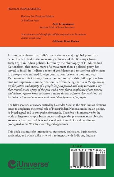 It is no coincidence that India?s recent rise as a major global power has been closely linked to the increasing influence of the Bharatiya Janata Party (BJP) in Indian politics. Driven by the philosophy of Hindu/Indian Nationalism, this entity, more of a movement than a political party, has served to instill in Indians a sense of confidence and restore lost self-esteem in a people who suffered foreign domination for over a thousand years. Detractors of this ideology have attempted to paint this philosophy as hate rant and supremacist indoctrination. Far from being that, it is the agonizing cry for justice and dignity of a people long suppressed and long tortured; a cry that embodies the agony of the past and a new-found confidence of the present and which together hopes to ensure a secure future: a future that envisions an inclusive all round economic and social development of a people. The BJP?s spectacular victory crafted by Narendra Modi in the 2014 Indian elections serves to emphasize the central role of Hindu/Indian Nationalism in Indian politics, its broad appeal and its comprehensive agenda. Therefore it is imperative for the world at large to attempt a better understanding of this phenomenon; an objective assessment based on hard facts and sound logic instead of the skewed image propagated in the West by its ideological opponents. This book is a must for international statesmen, politicians, businessmen, academics, and others alike who wish to interact with India and Indians