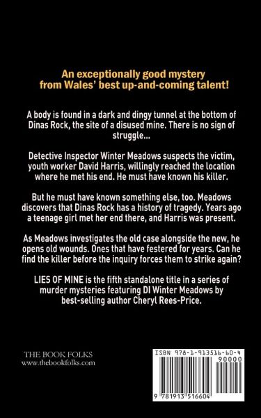 An exceptionally good mystery from Wales' best up-and-coming talent! A body is found in a dark and dingy tunnel at the bottom of Dinas Rock, the site of a disused mine. There is no sign of struggle... Detective Inspector Winter Meadows suspects the victim, youth worker David Harris, willingly reached the location where he met his end. He must have known his killer. But he must have known something else, too. Meadows discovers that Dinas Rock has a history of tragedy. Years ago a teenage girl met her end there, and Harris was present. As Meadows investigates the old case alongside the new, he opens old wounds. Ones that have festered for years. Can he find the killer before the inquiry forces them to strike again? LIES OF MINE is the fifth standalone title in a series of murder mysteries featuring DI Winter Meadows by best-selling author Cheryl Rees-Price. The full list of books, in order of publication, is as follows: 1. THE SILENT QUARRY 2. FROZEN MINDS 3. SUFFER THE CHILDREN 4. A KNOT OF SPARROWS 5. LIES OF MINE 6. RISE TO THE FLY 7. WINTER'S CRY 8. HARBOUR NO SECRETS
