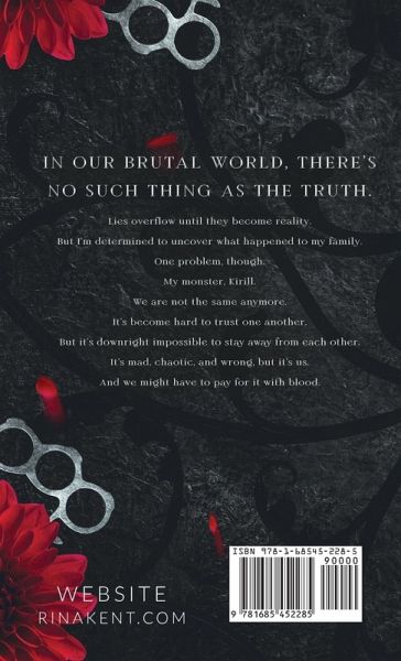 NOTE: This is the special edition print of Lies of my Monster. To find the ebook and audiobook, please look for the main edition. In our brutal world, there's no such thing as the truth. Lies overflow until they become a reality. But I'm determined to uncover what happened to my family. One problem, though. My monster, Kirill. We are not the same anymore. It's become hard to trust one another. But it's downright impossible to stay away from each other. It's mad, chaotic, and wrong, but it's us. And we might have to pay for it with blood.
