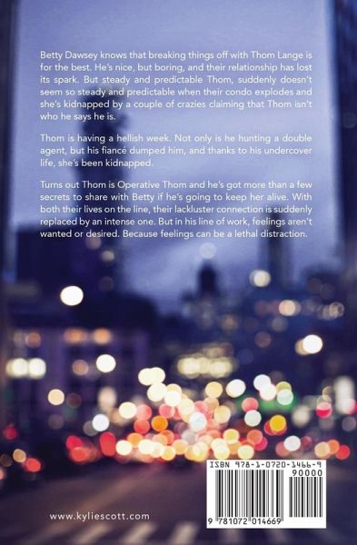 Betty Dawsey knows that breaking things off with Thom Lange is for the best. He’s nice, but boring, and their relationship has lost its spark. But steady and predictable Thom, suddenly doesn’t seem so steady and predictable when their condo explodes and she’s kidnapped by a couple of crazies claiming that Thom isn’t who he says he is. Thom is having a hellish week. Not only is he hunting a double agent, but his fiancé dumped him, and thanks to his undercover life, she’s been kidnapped. Turns out Thom is Operative Thom and he’s got more than a few secrets to share with Betty if he’s going to keep her alive. With both their lives on the line, their lackluster connection is suddenly replaced by an intense one. But in his line of work, feelings aren’t wanted or desired. Because feelings can be a lethal distraction.