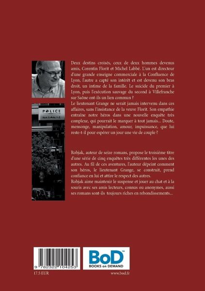 Deux destins croisés, ceux de deux hommes devenus amis, Corentin Florit et Michel Labbé. L'un est directeur d'une grande enseigne commerciale à la Confluence de Lyon, l'autre a capté son intérêt et est devenu son bras droit, un intime de la famille. Le suicide du premier à Lyon, puis l'exécution sauvage du second à Villefranche sur Saône ont-ils un lien commun ? Le lieutenant Grange ne serait jamais intervenu dans ces affaires, sans l'insistance de la veuve Florit. Son empathie entraîne notre héros dans une nouvelle enquête très complexe, qui pourrait le marquer à tout jamais... Doute,…mehr