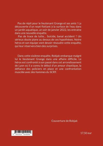 Pas de répit pour le lieutenant Grange et ses amis ! La découverte d'un noyé flottant à la surface de l'eau dans un jardin aquatique, un soir de janvier 2022, les entraîne dans une nouvelle enquête. Pas de trace de lutte... Suicide, banal accident ? Un sérieux doute plane au dessus de ces hypothèses. Notre héros et son équipe vont devoir résoudre cette enquête, qui leur réservera bien des surprises.