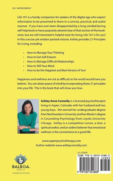 Life 101 is a handy companion for seekers of the digital age who expect information to be presented to them in a concise, practical, and useful manner. If you have ever been disappointed by a long-winded boring self-help book or have purposely steered clear of that section of the book-store, but are still interested in helpful tools for living; Life 101 is for you! In this concise yet wisdom packed volume, Ashley provides 21 Principles for Living, including: ¿ How to Manage Your Thinking ¿ How to Get Self-Esteem ¿ How to Manage Difficult Relationships ¿ How to Still Your Mind ¿ How to be the Happiest and Best Version of You! Happiness and wellness are not as difficult as the world would have you believe. You can attain peace of mind by incorporating these 21 principles into your life. This is the book that will show you how.