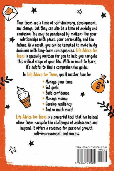 Your teens are a time of self-discovery, development, and change, but they can also be a time of anxiety and confusion. You may be perplexed by matters like your relationships with peers, your personality, and the future. As a result, you can be tempted to make hasty decisions with long-term consequences. Life Advice for Teens is specially written for you to help you navigate this critical stage of your life. With so much to learn, it's helpful to find a comprehensive guide. In Life Advice for Teens, you'll master how to:Manage your time Set goals Build confidence Manage money Develop resiliency And so much more! Life Advice for Teens is a powerful tool that has helped other teens navigate the challenges of adolescence and beyond. It offers a roadmap for personal growth, self-improvement, and success. Are you ready to become your best self and master new skills?