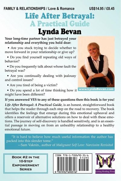 Your long-time partner has just betrayed your relationship and everything you hold dear: Are you stuck trying to decide whether to move forward in your relationship or give up? Do you find yourself repeating old ways of behavior? Do you frequently talk about whose fault the betrayal was? Are you continually dealing with jealousy and control issues? Are you tired of being a victim? Do you spend a lot of time thinking how it might have been different? If you answered YES to any of these questions then this book is for you! Life After Betrayal: A Practical Guide, is an honest, straightforward book that helps the reader through each step on the road to recovery. The book identifies the feelings that emerge during this emotional upheaval and offers a reservoir of alternative solutions on how to deal with these emotions. The journey of self-discovery is handled sensitively, and is an essential passage in moving on from an unhealthy relationship to a healthy emotional future. What People Are Saying About Life After Betrayal "Life after Betrayal : A Practical Guide" by Lynda Bevan delivers on its promise. It is a no-nonsense, honest but compassionate guide to surviving all forms of betrayal, from the romantic to the parental. It is hard to believe how much useful information the author has packed into this slender tome. The book is studded with illuminating case studies and provides an excellent exposition of issues such as post-traumatic emotional responses, pre-trauma expectations, setting boundaries, forgiveness and acceptance, and the do's and don'ts of moving forward. A gem." --Sam Vaknin, author of "Malignant Self Love - Narcissism Revisited" Life After Your Lover Walks Out: A Practical Guide is Book #2 in the 10-Step Empowerment Series from Loving Healing Press (http://www.LovingHealing.com)