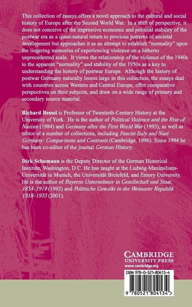 This collection of essays offers a novel approach to the cultural and social history of Europe after the Second World War. In a shift of perspective, it does not conceive of the impressive economic and political stability of the postwar era as a quasi-natural return to previous patterns of societal development but approaches it as an attempt to establish 'normality' upon the lingering memories of experiencing violence on a hitherto unprecedented scale. It views the relationship of the violence of the 1940s to the apparent 'normality' and stability of the 1950s as a key to understanding the history of post-war Europe. While the history of post-war Germany naturally looms large in this collection, the essays deal with countries across Western and Central Europe, offer comparative perspectives on their subjects, and draw upon a wide range of primary and secondary source material.