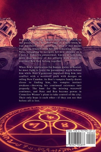 Ben is a recovering vampire determined to pick up the pieces of the life that came to a halt when he was murdered over a year ago-even if that means distancing himself from his few remaining friends. Nate, struggling to navigate his new identity as a Class 3 Unknown paranormal, knows it will take more than mastery of his affinity with plants to convince Ben they belong together. When Ben's application for human status is denied, he must fight to leave the paranormal world behind him while Nate's generous impulses drag him into conflict with a werewolf pack with designs on ruling New Camden. As Ben's vampire family draws closer to finding him, his vampire instinct awakens-throwing his continued existence into jeopardy. The hunt for the missing werewolf continues, and Nate and Ben become pawns in Councilor Wisner's plans to take control of the city. Their only hope is each other-if they can see that before all is lost.