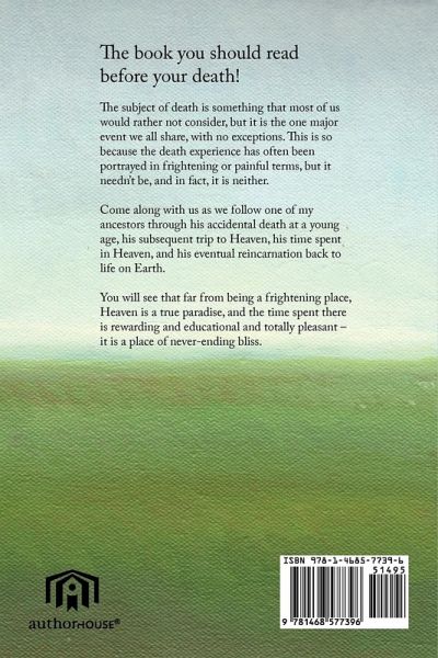 The book you should read before your death The subject of death is something that most of us would rather not consider, but it is the one major event we all share, with no exceptions. This is so because the death experience has often been portrayed in frightening or painful terms, but it needn't be, and in fact, it is neither. Come along with us as we follow one of my ancestors through his accidental death at a young age, his subsequent trip to Heaven, his time spent in Heaven, and his eventual reincarnation back to life on Earth. You will see that far from being a frightening place, Heaven is a true paradise, and the time spent there is rewarding and educational and totally pleasant - it is a place of never-ending bliss.
